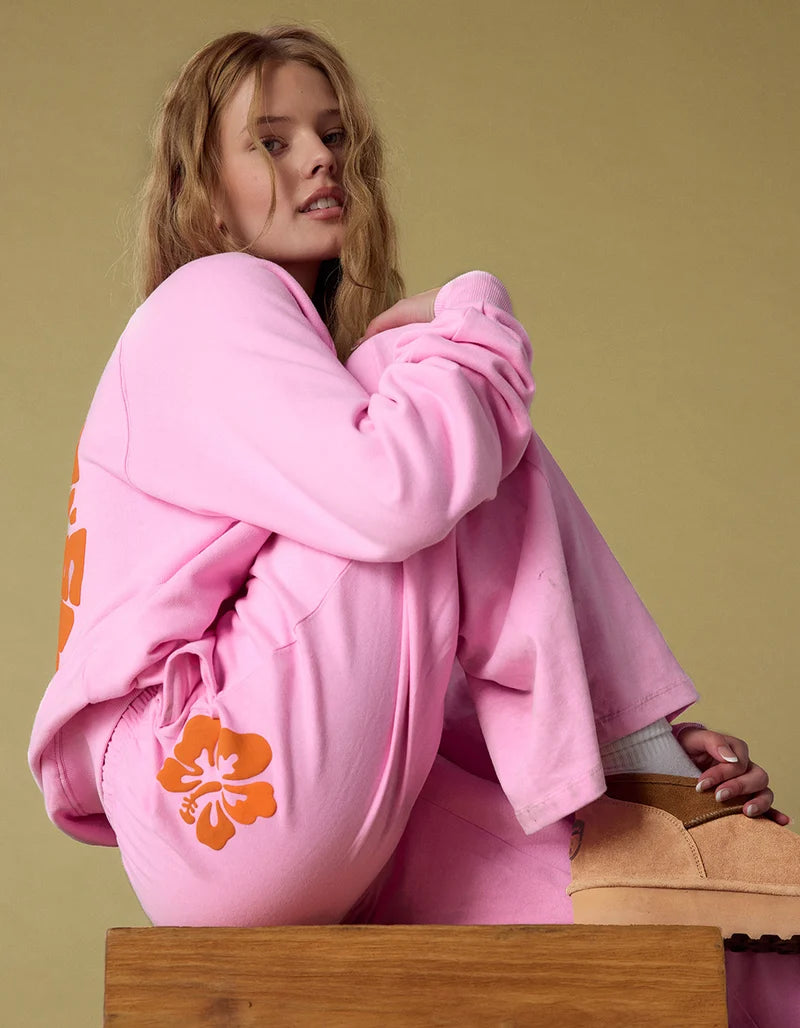 Sink into the plush, peached cotton jersey fabric and let your worries melt away in the Luxe Surf Relaxed Track Pant. These relaxed fit track pants are designed for all-day comfort, whether you're running errands or kicking back at home. The contrasting logos add a touch of style to your casual look. And we love the little flower on the booty! :)