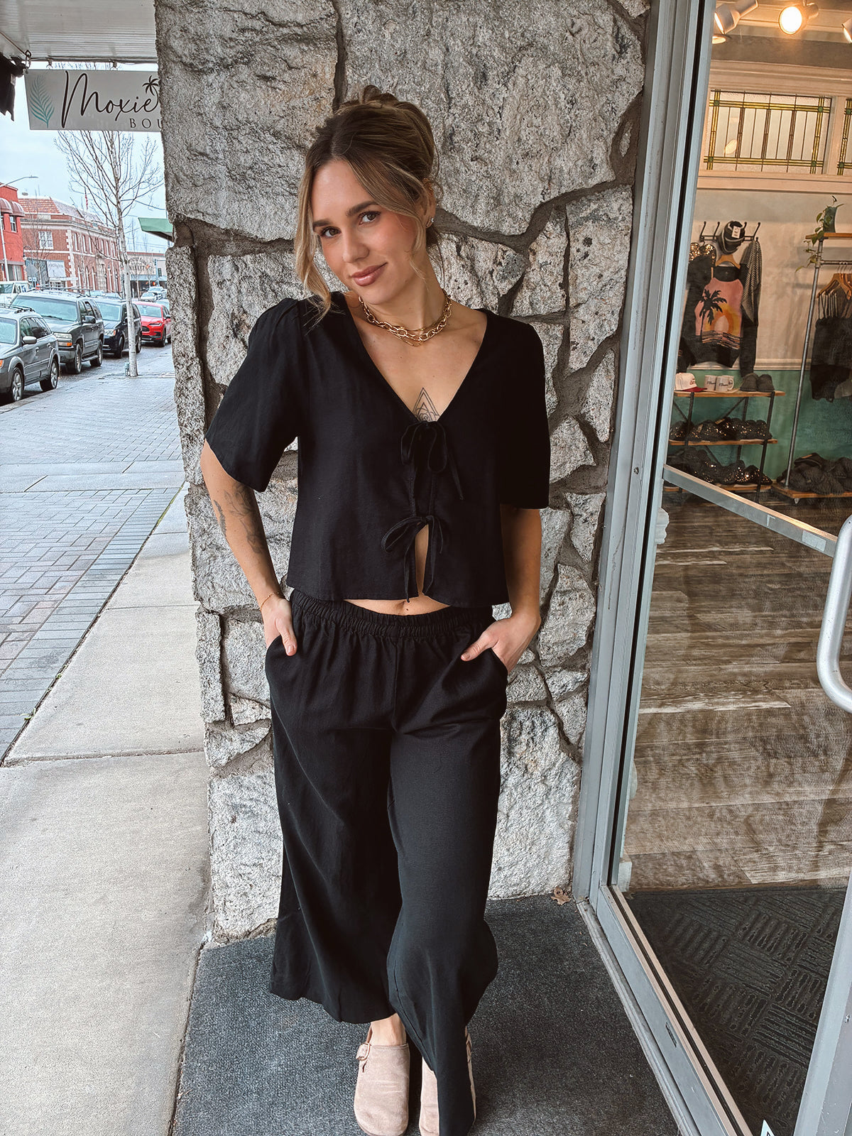Detailed with an elastic waistband, side seam pockets, and washed linen blend fabric, these high rise pants will be a forever staple in your wardrobe. Make it a set with the La Belle Linen Top. We’re obsessed with this set!! We’d definitely wear both pieces all Spring and Summer!